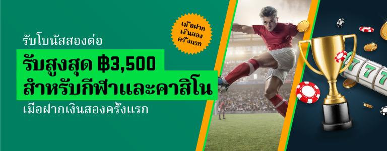 รับโบนัสฝากเงิน 100% สูงสุด 3500 ฿ สำหรับกีฬา พร้อมเดิมพันฟรี 175 ฿